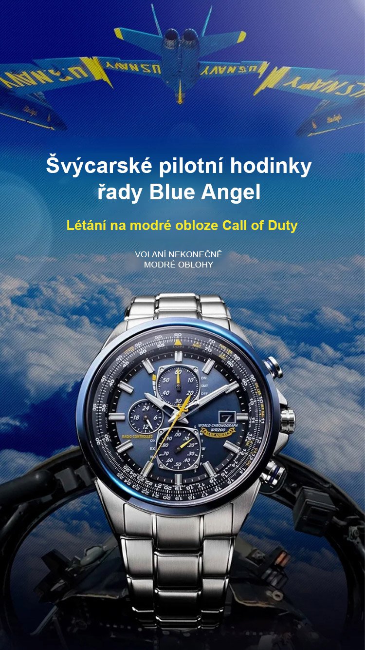 Modrý anděl, tři oči, šest ručiček, solární hodinky s automatickým pohonem.