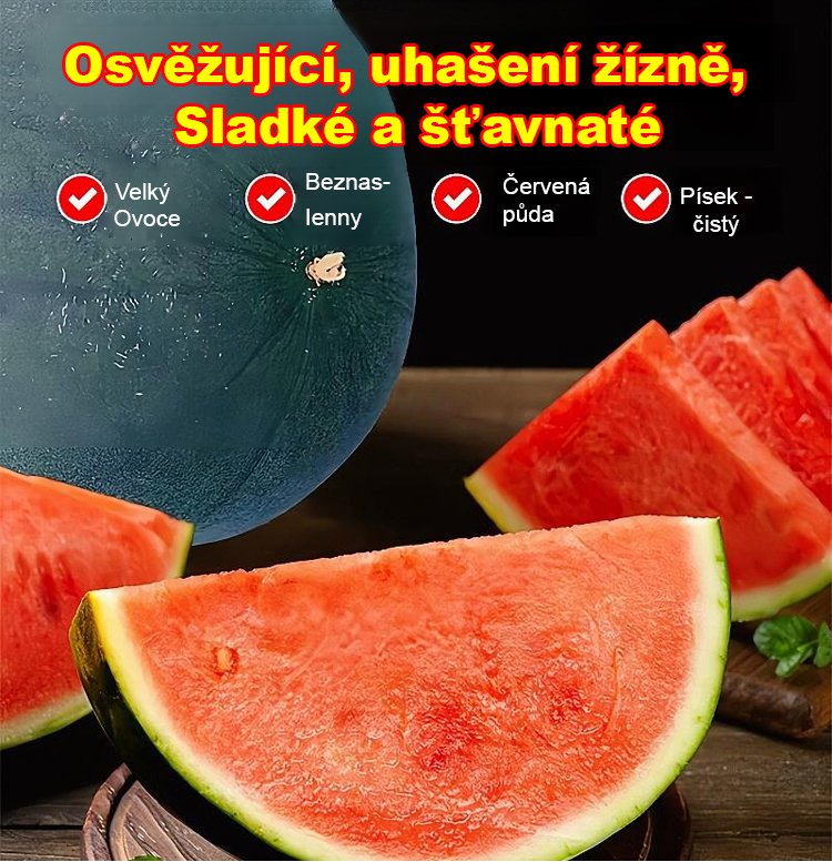 Černá kůže, červená a bez semen! Plná ústa šťávy, ústa plná sladkosti!